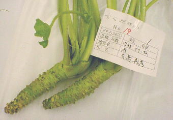 この山葵はミヨシ種苗さんのグリーンサムと言う品種です。選ばれた点は、大きさではあまり大きくなかったのですが、たいへん色がよく、また傷なども皆無でした。その点が評価されたのだと思います。